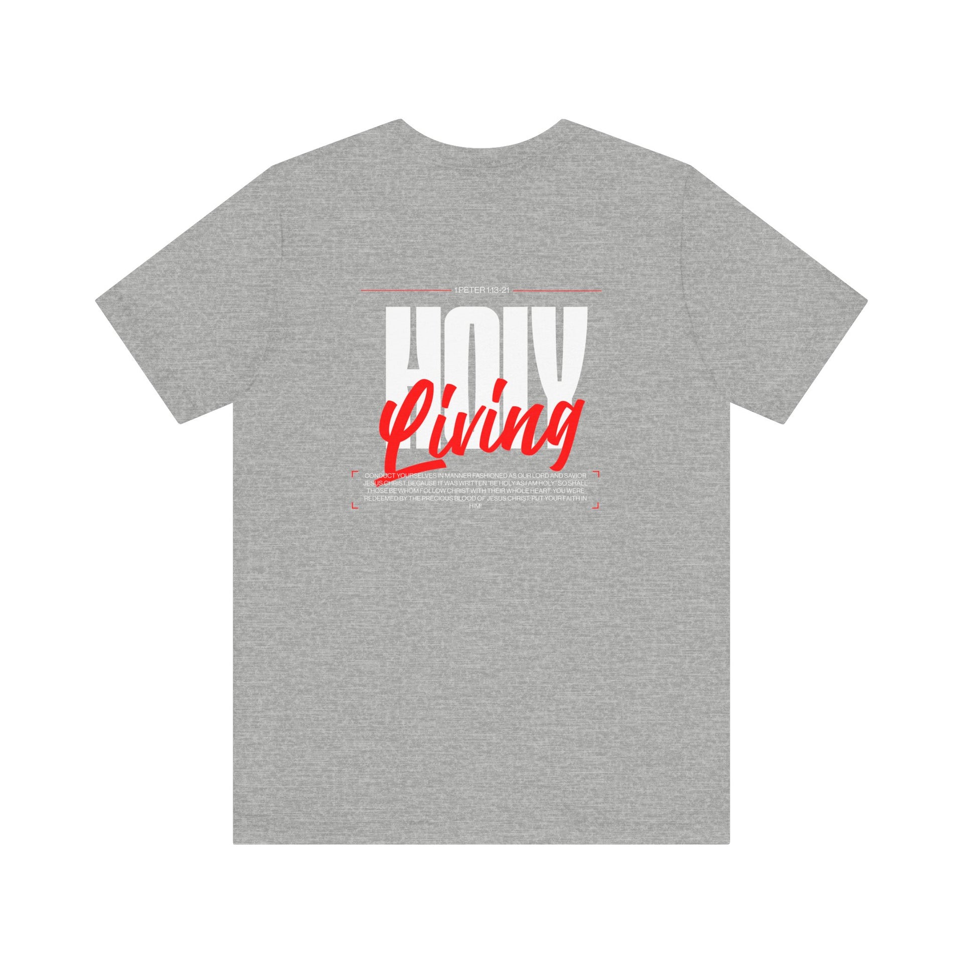 Step into your faith boldly with the "Holy Living" T-shirt, inspired by 1 Peter 1:13-21. This striking design reminds us of the call to live a life set apart, rooted in Christ's holiness, and redeemed by His precious blood. With the powerful words “Be holy as I am holy” and a bold, contemporary design, this T-shirt is both a fashion statement and a declaration of faith.