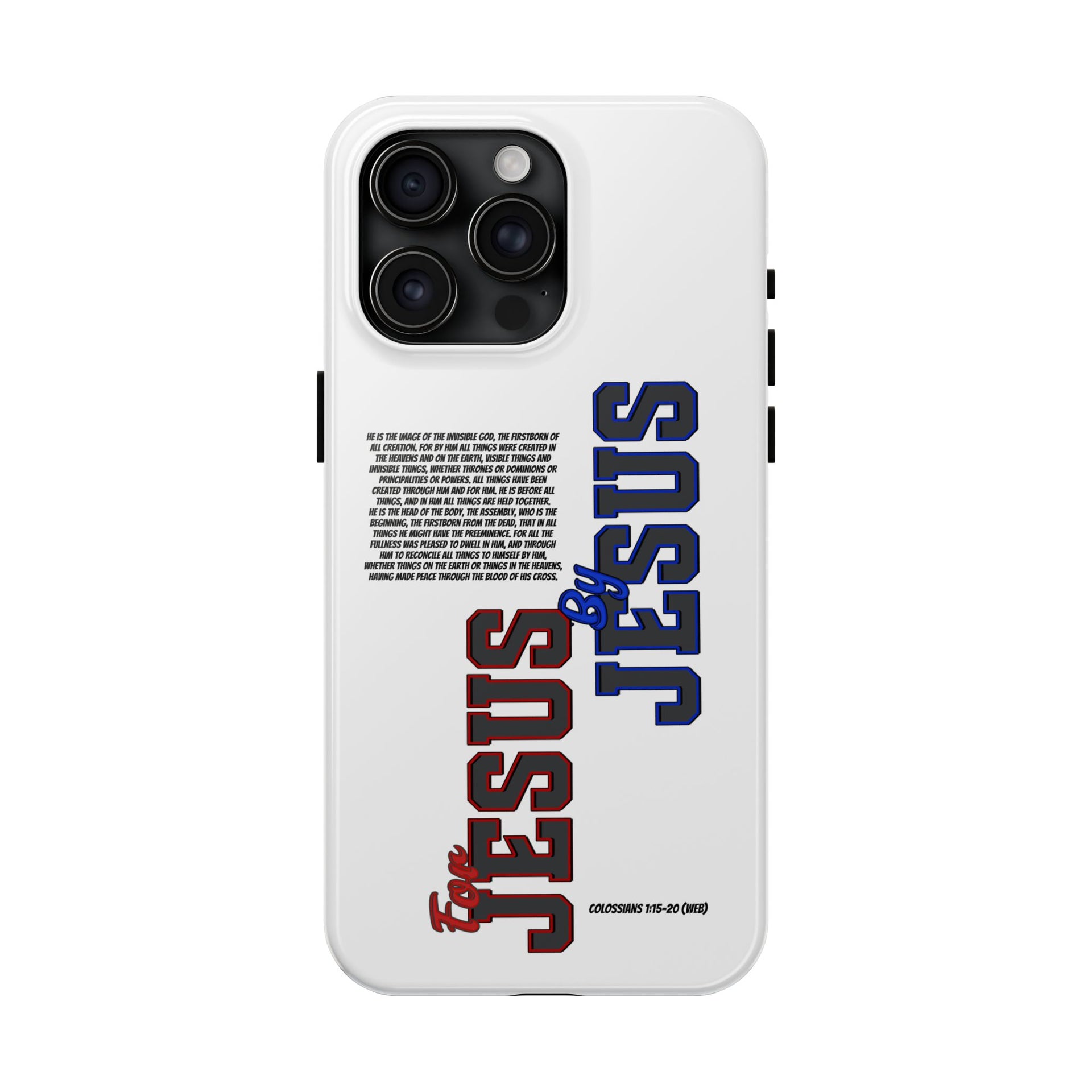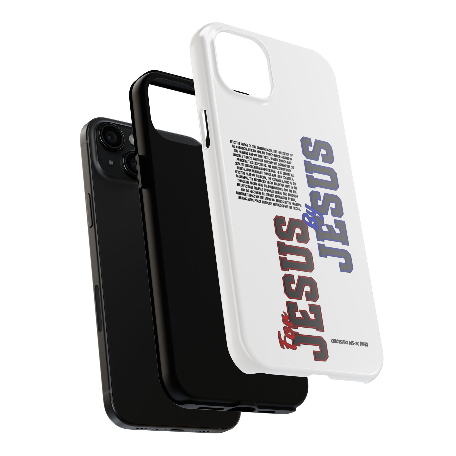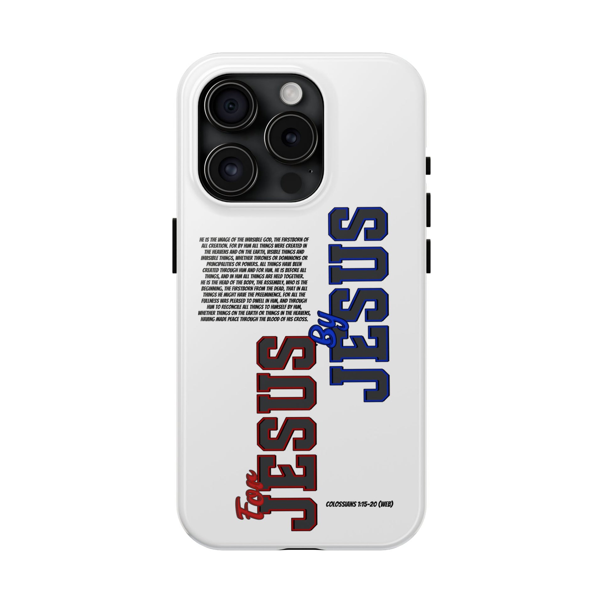 Carry your faith boldly with the For Jesus, By Jesus Christian cell phone case, inspired by Colossians 1:15-20. This tough iPhone case is designed to protect your device while serving as a daily reminder that all things are by Him and for Him. Featuring bold typography and scripture, this Christian-themed iPhone cell phone case is perfect for believers who want to share their faith wherever they go.