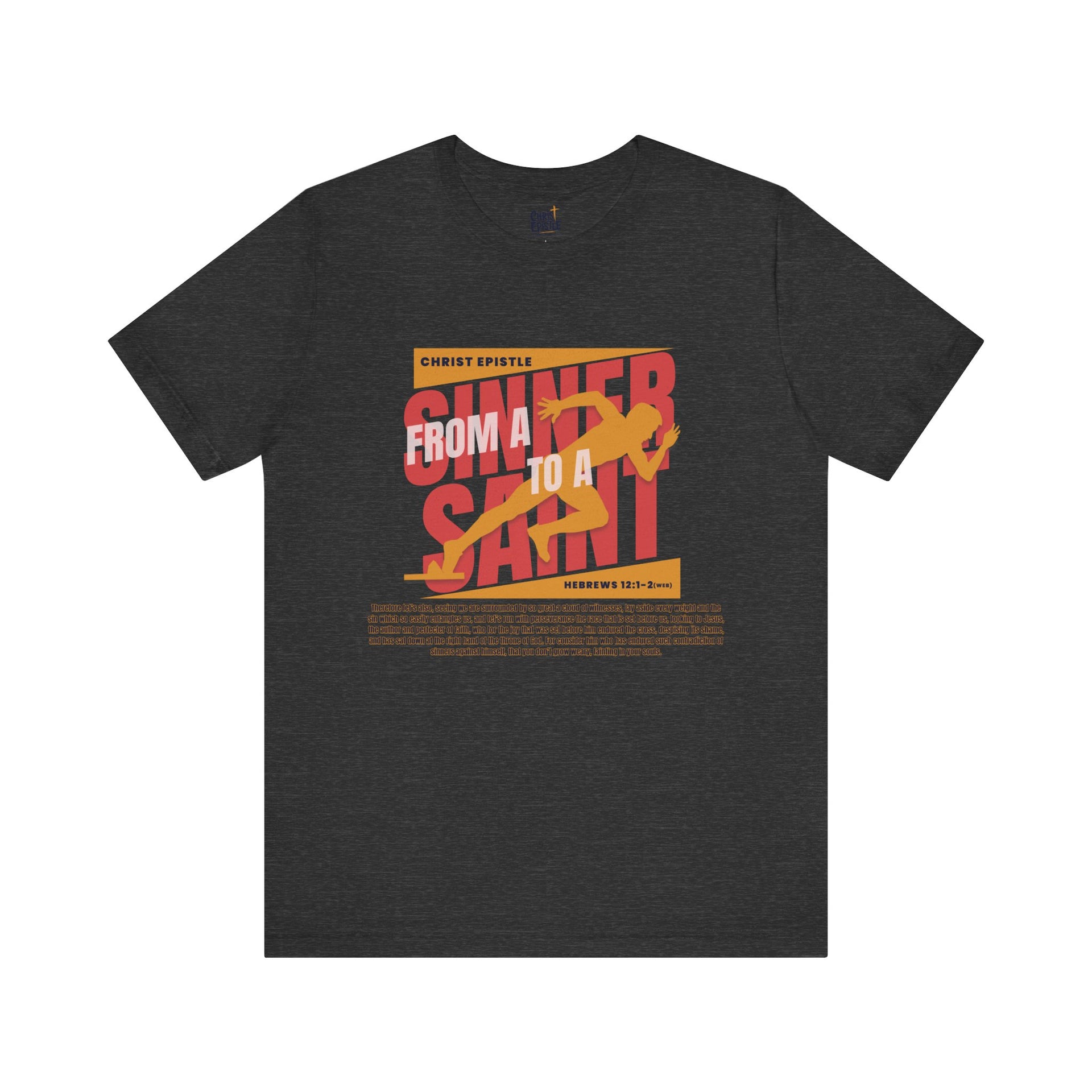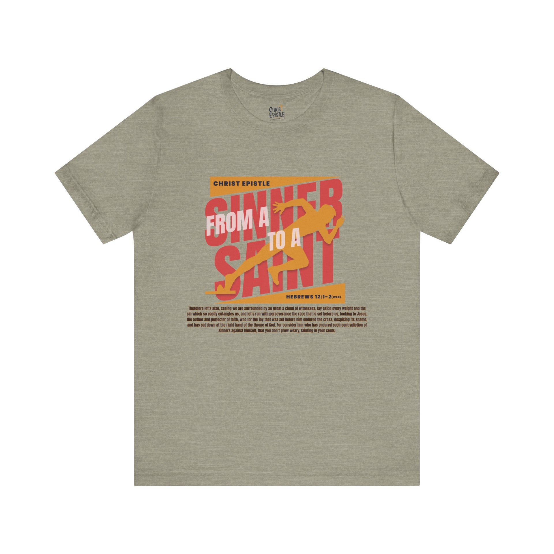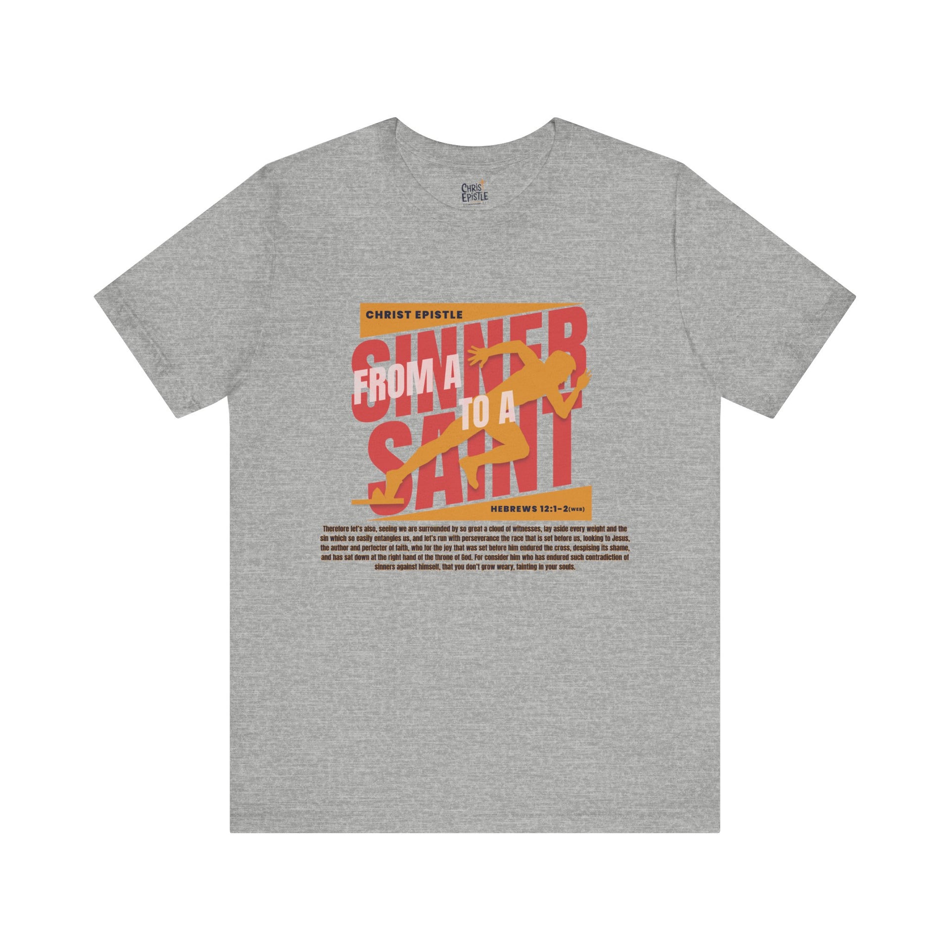 From Sinner to Saint T-Shirt | Unisex Jersey Short Sleeve Tee | Run your Race and Look to Jesus!