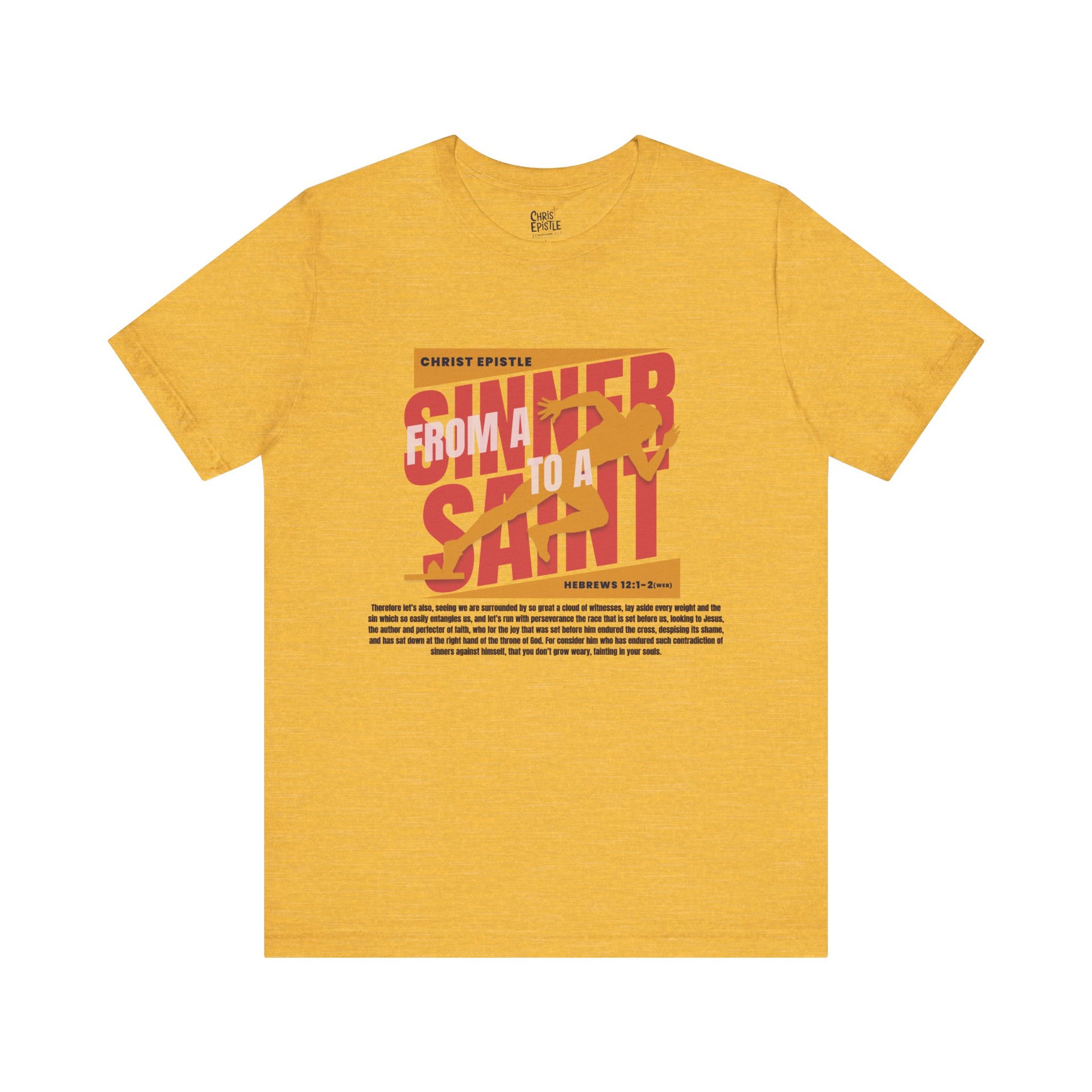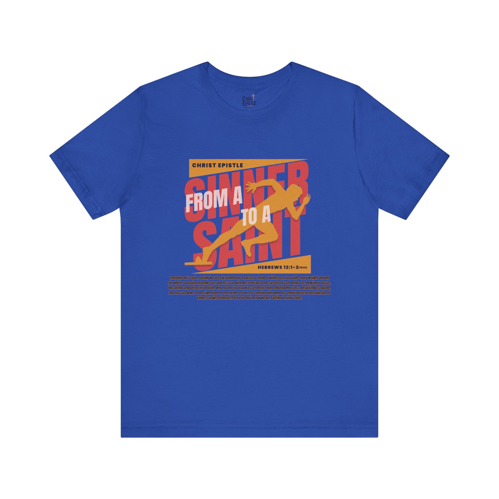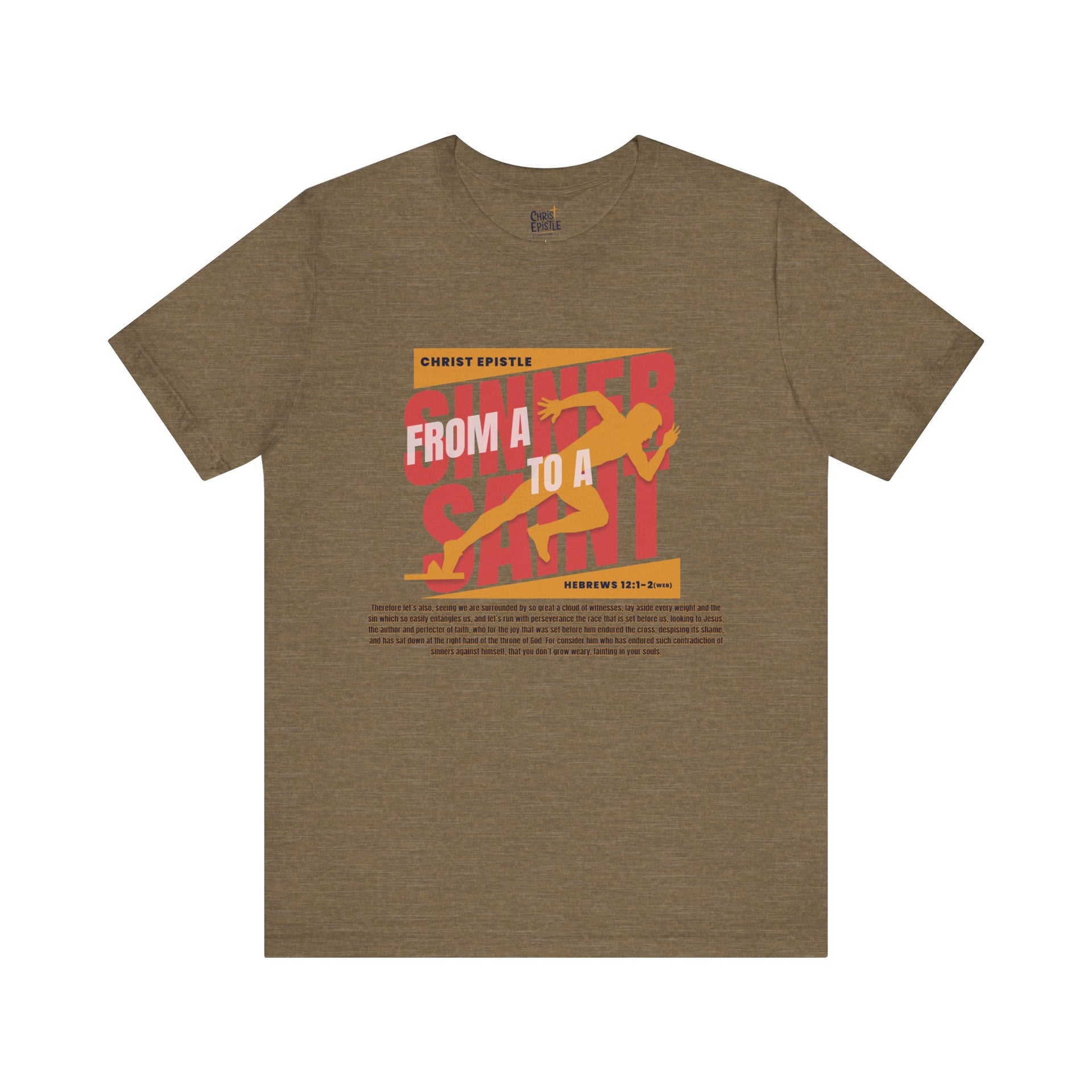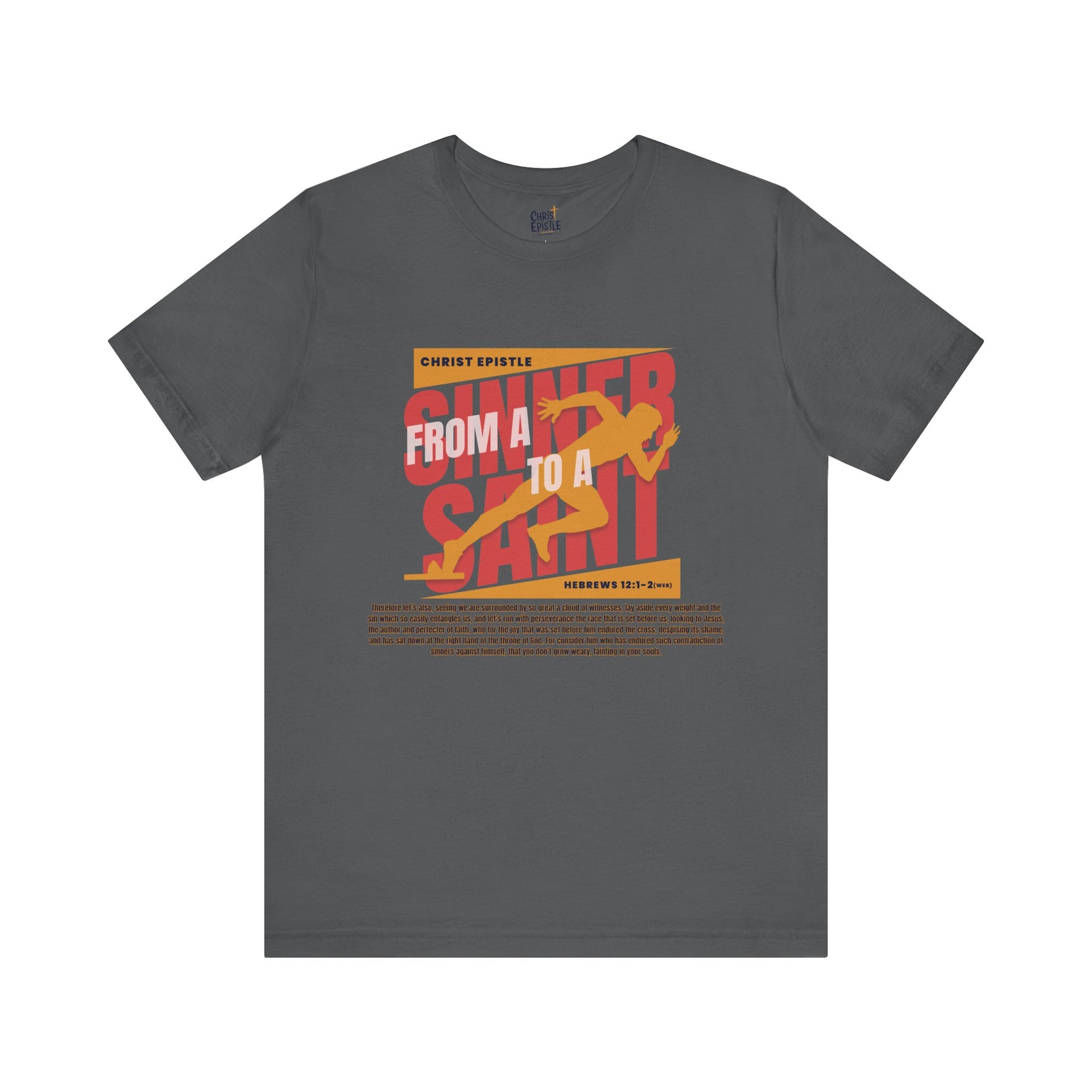 From Sinner to Saint T-Shirt | Unisex Jersey Short Sleeve Tee | Run your Race and Look to Jesus!